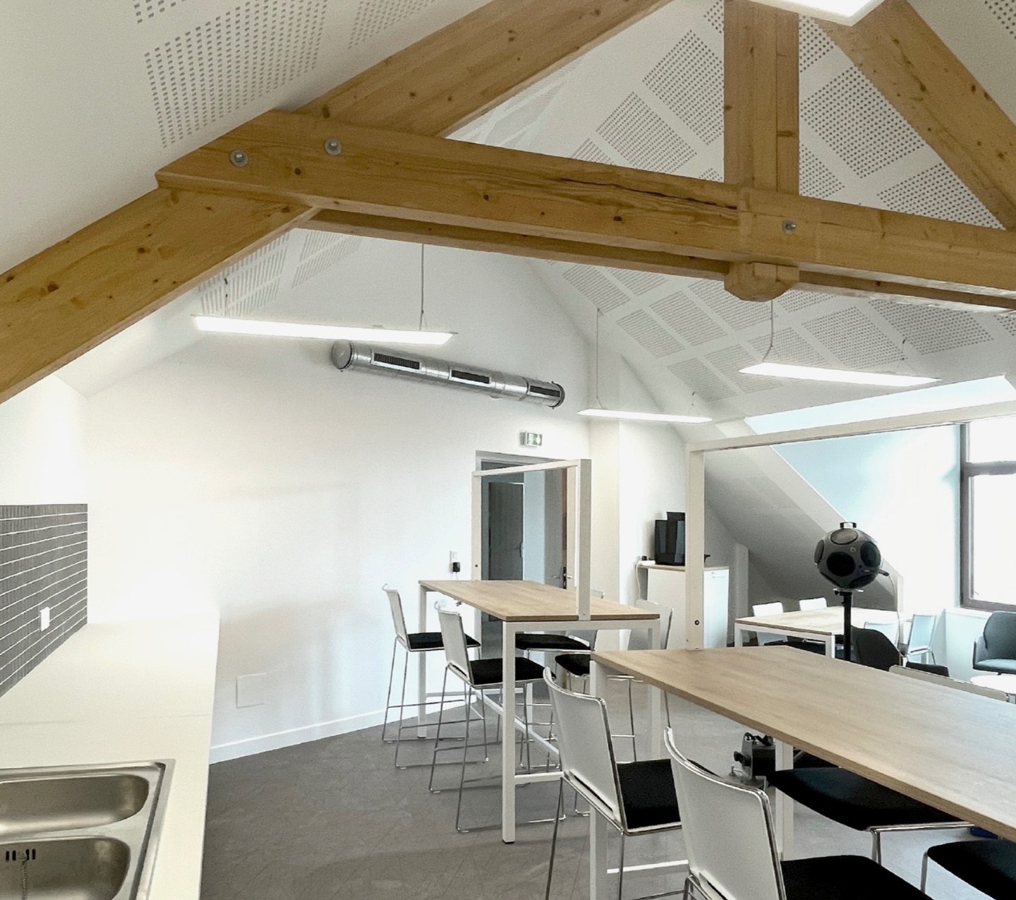 Le bâtiment intègre des espaces adaptés aux besoins des équipes : bureaux lumineux, salles de réunion, zones de convivialité, ainsi que des espaces dédiés au stockage et à l’archivage. Le rez-de-chaussée est aménagé pour accueillir le public dans les meilleures conditions, renforçant ainsi la proximité avec les usagers.