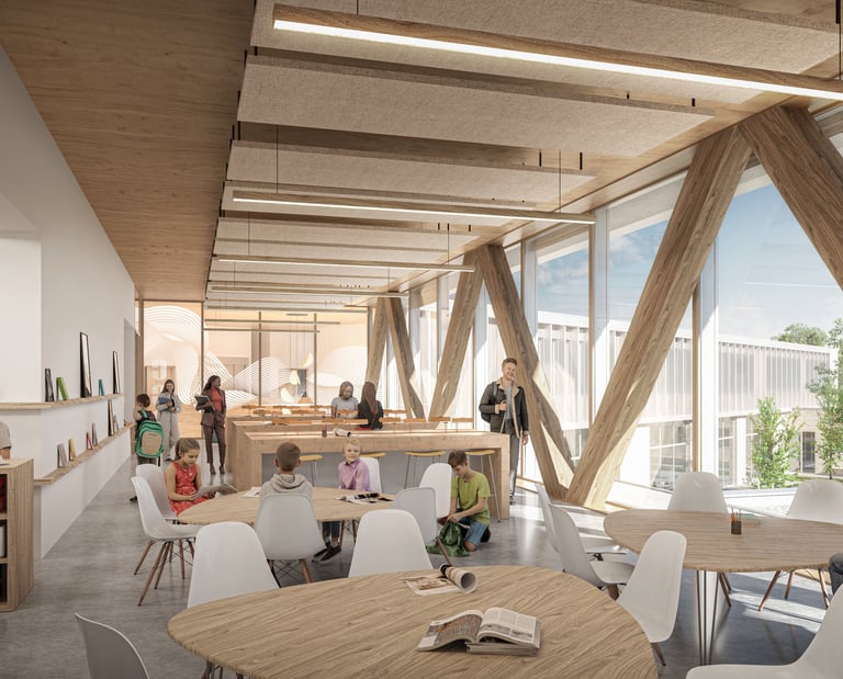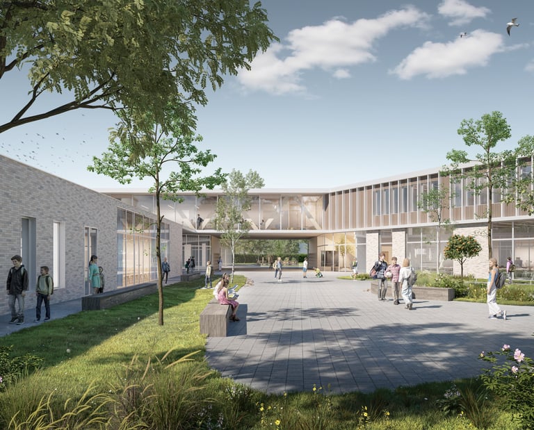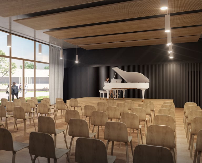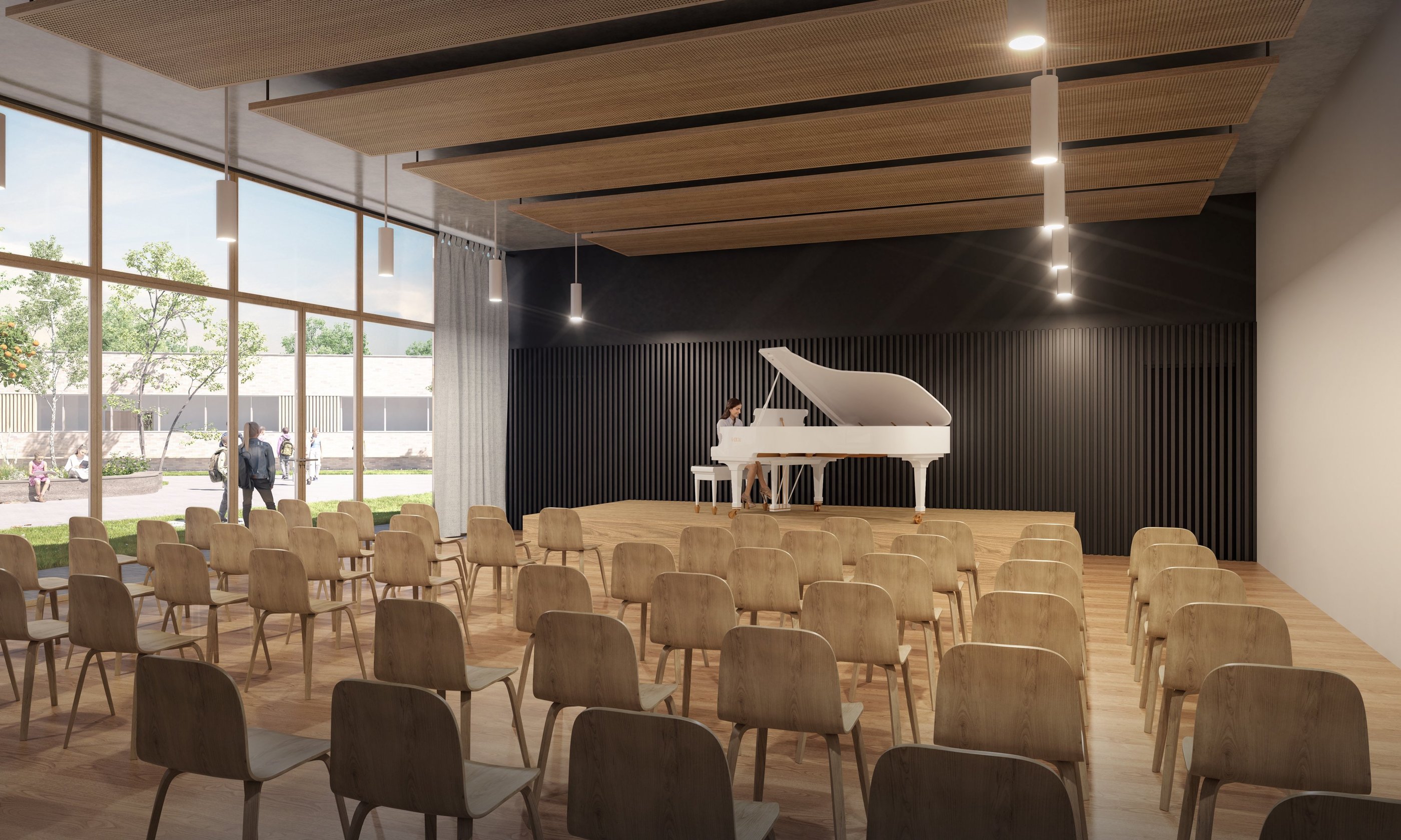 Le projet privilégie la lumière naturelle, la clarté des circulations et l’ouverture sur les espaces extérieurs, tout en s’intégrant finement dans son environnement urbain.