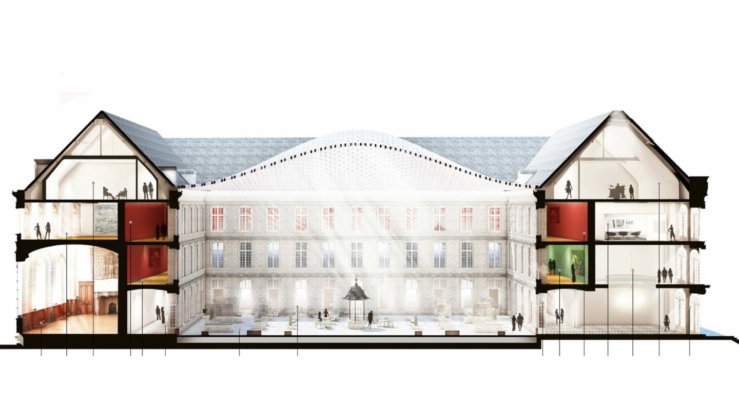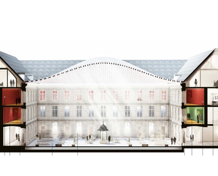Située au cœur de l’ancien palais abbatial de Saint-Vaast, la rénovation du conservatoire d’Arras s’inscrit dans un ambitieux projet de requalification patrimoniale, mené par l’agence Moatti – Rivière (architecte mandataire), en collaboration avec Alain-Charles Perrot, architecte en chef des Monuments Historiques.