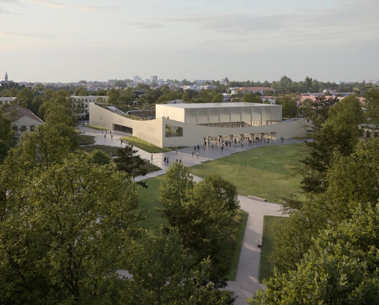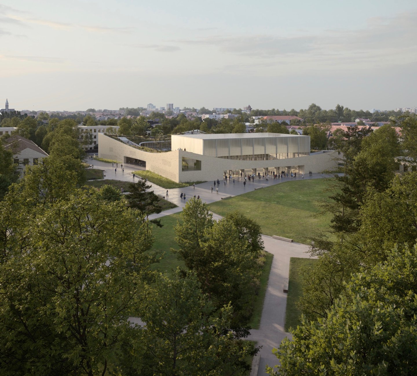 Situé au cœur du quartier Degroote, ce projet multifonctionnel se distingue par l'élégance de ses formes. Les courbes et les variations d'altimétrie des façades s'harmonisent avec les bâtiments environnants, créant un paysage évoquant des vagues et des dunes.