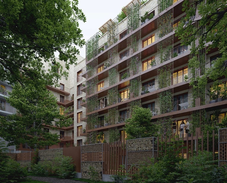 Le programme comprend également un parking souterrain, pensé pour répondre aux besoins en mobilité tout en préservant la qualité des espaces extérieurs. L’ensemble a été conçu avec une attention particulière à la qualité architecturale, au bien-être des habitants et à la durabilité environnementale.