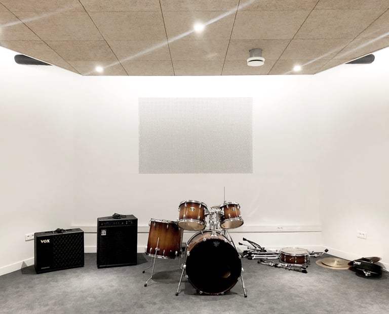 À l’intérieur, le site propose des ateliers d’écriture, des salles de répétition, un studio d’enregistrement et des espaces dédiés à la création musicale. La conception privilégie une basse consommation énergétique, avec des matériaux durables et une attention particulière à l’acoustique et à la qualité de l’air.