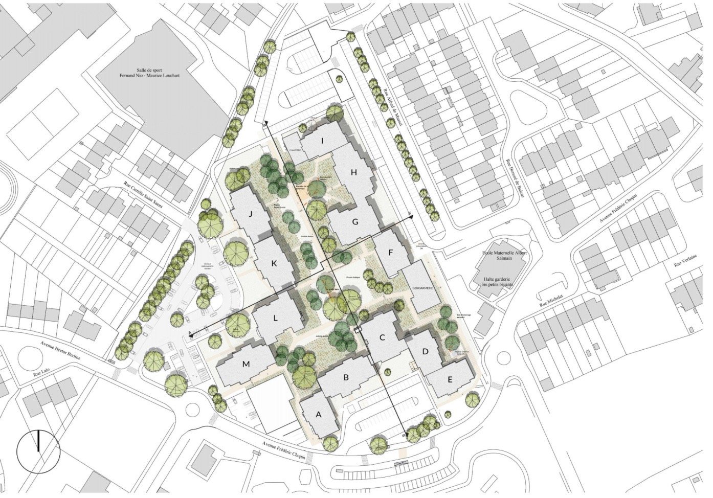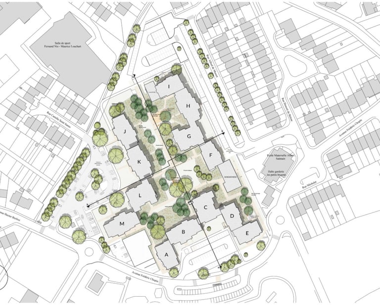 Le projet porte sur la réhabilitation de 484 logements collectifs répartis sur trois immeubles construits dans les années 1970, situés rues Chopin, Musset et Saint-Saëns. Les bâtiments, composés de logements du T1 au T4 et de locaux communs, présentent des hauteurs variables allant de R+3 à R+9 et nécessitent une transformation globale pour répondre aux usages actuels.