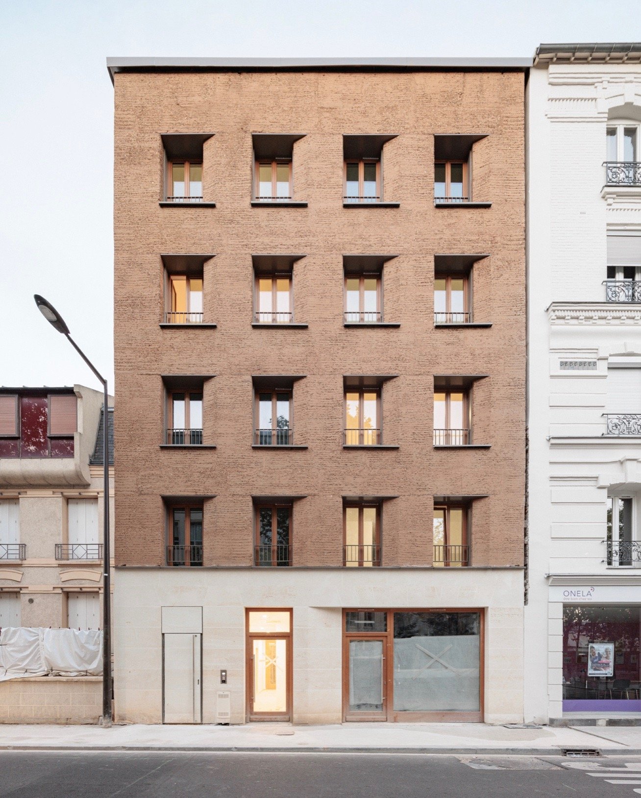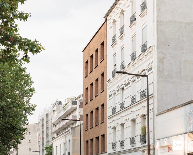 Compact et aligné sur la rue, le bâtiment s’intègre avec finesse au tissu urbain historique de ce quartier ouvrier, tout en proposant une écriture architecturale respectueuse de l’environnement.