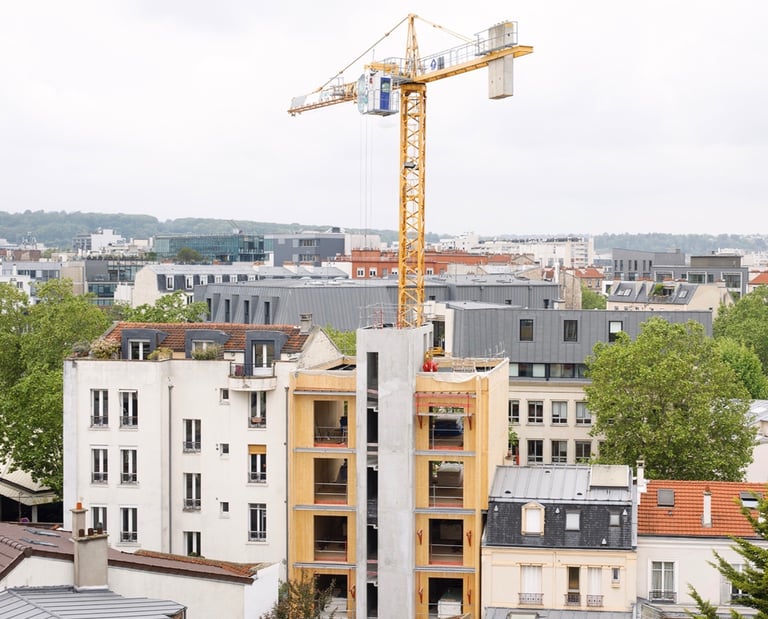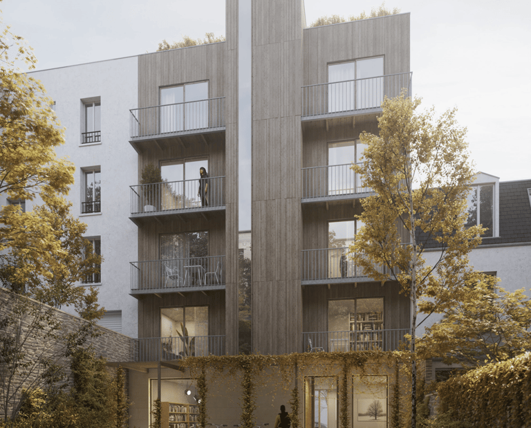 Dans le cadre d’un concours pour la construction d’un immeuble R+4 au 17 rue des 4 Cheminées à Boulogne-Billancourt, le projet devait répondre à des exigences ambitieuses : structure bois, matériaux biosourcés, certification HQE, et sobriété environnementale.